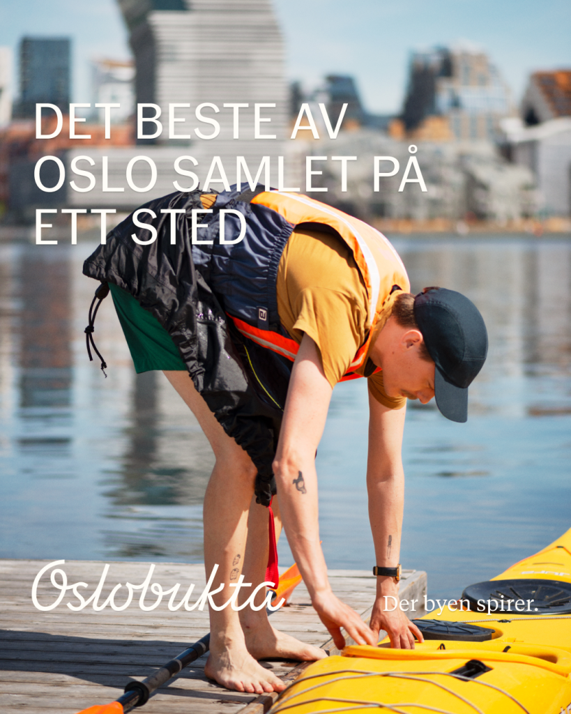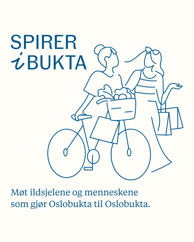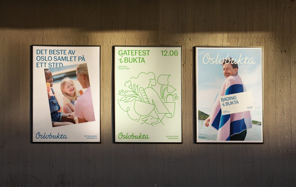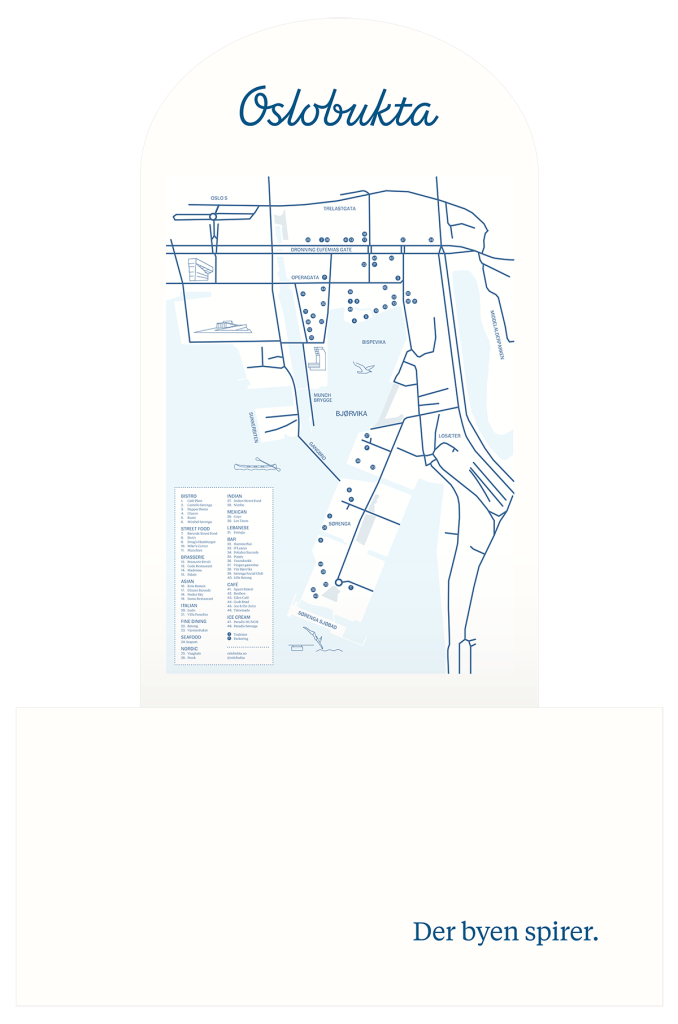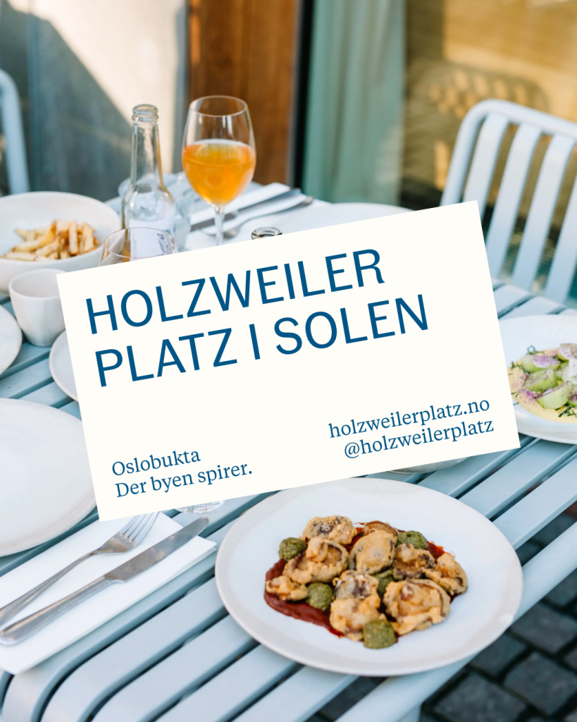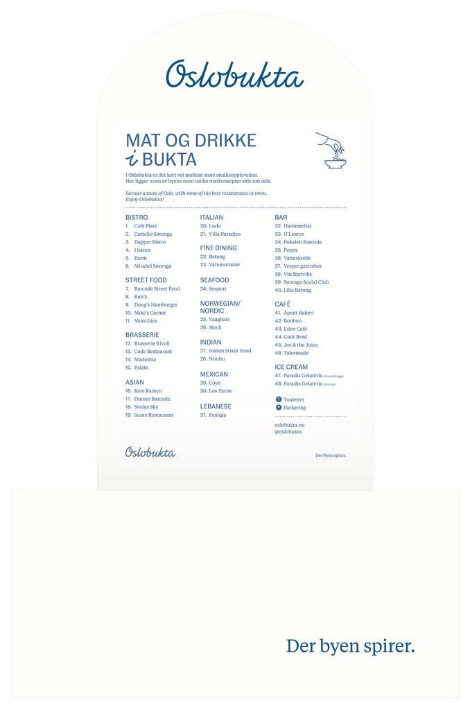 The phrase “Der byen spirer.” is consistently rendered in the brand’s designated font, Tiempos Text Regular, and remains untranslatable.