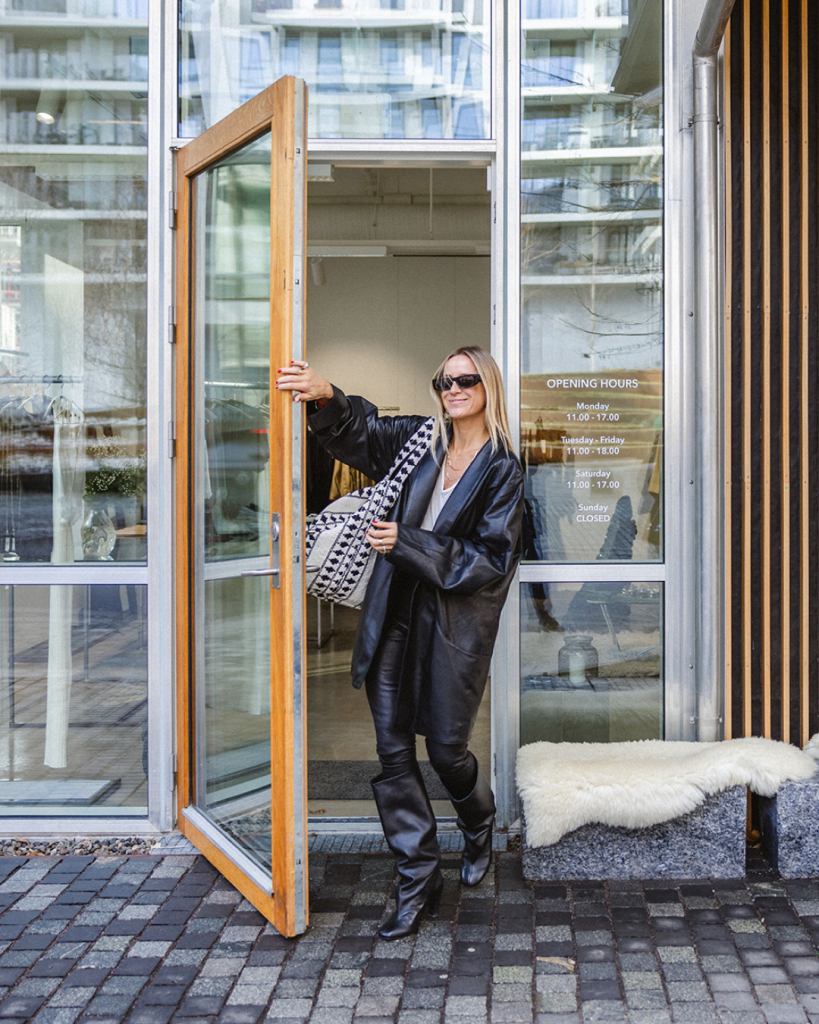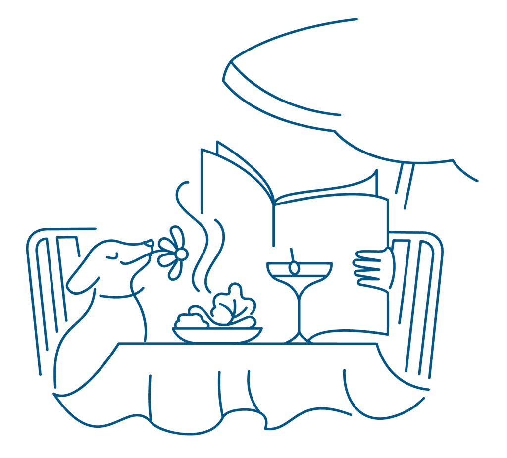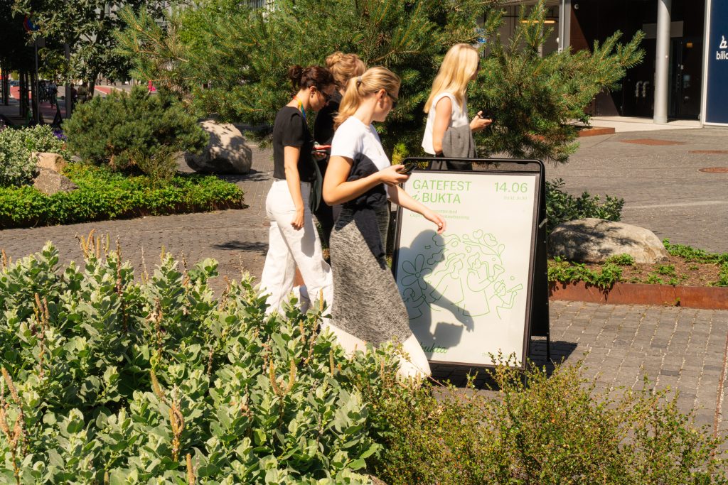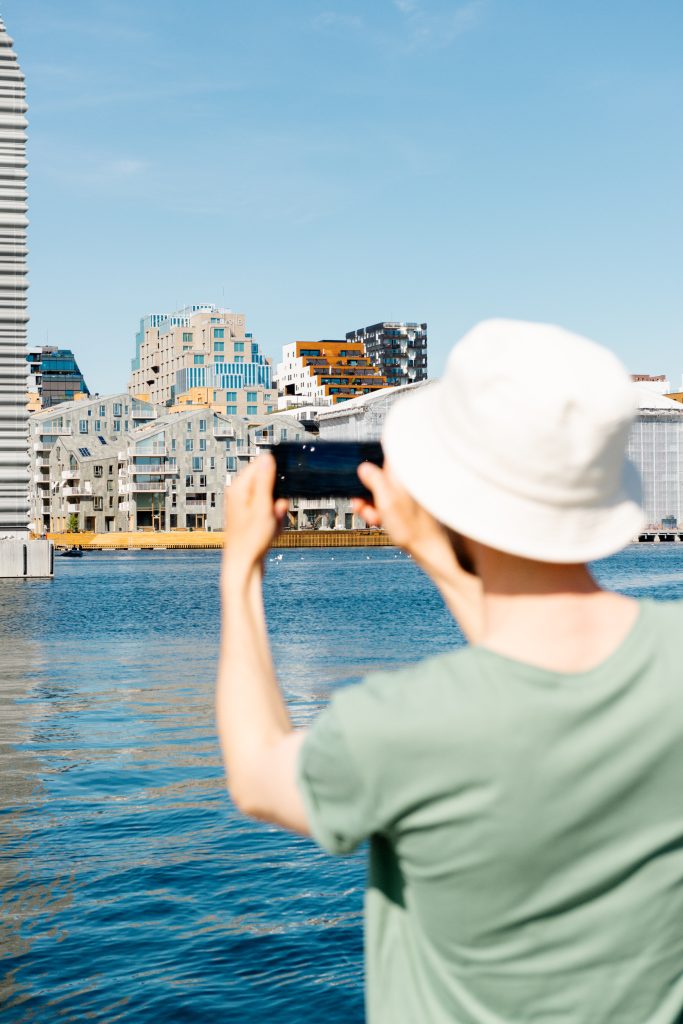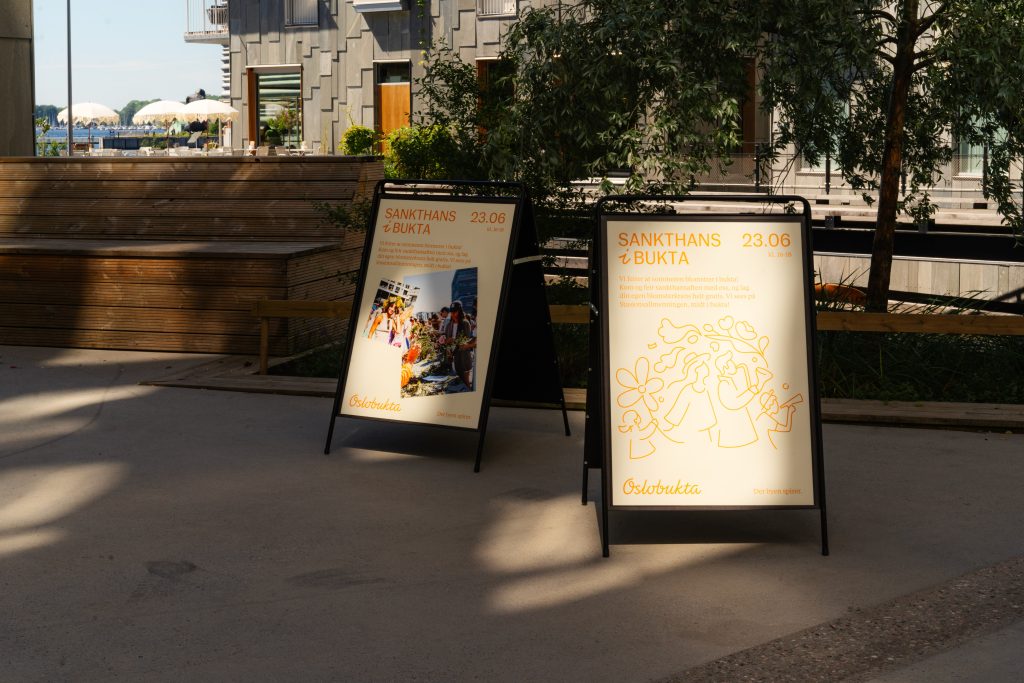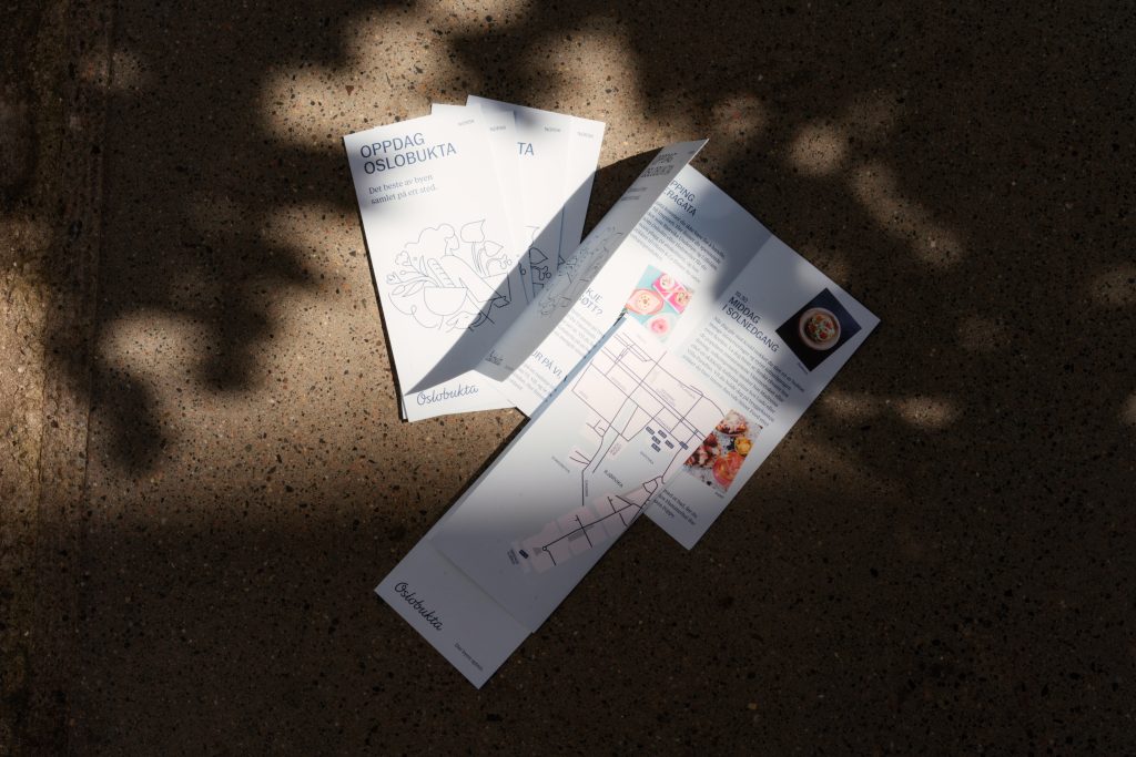 The phrase “Der byen spirer.” is consistently rendered in the brand’s designated font, Tiempos Text Regular, and remains untranslatable.