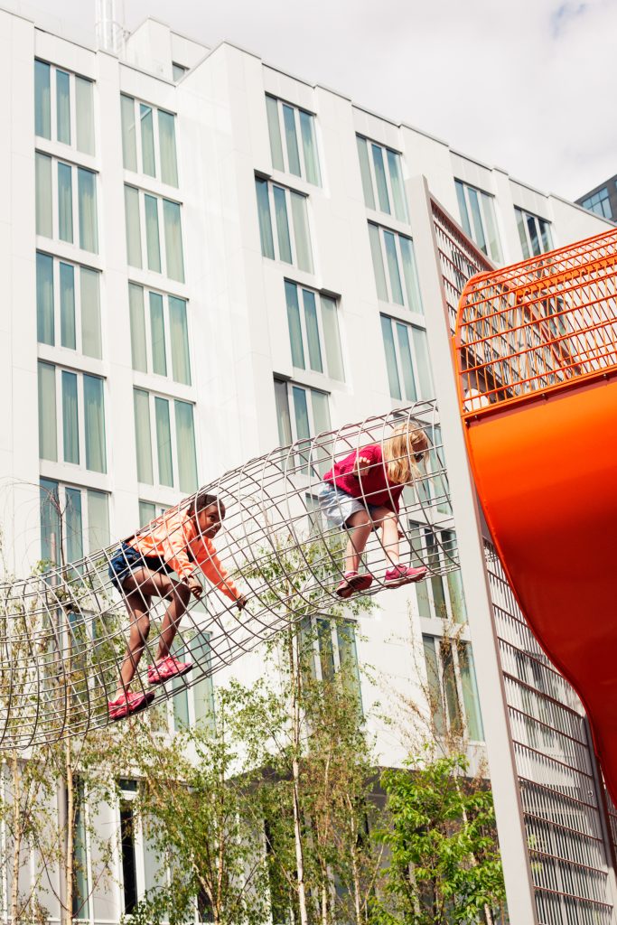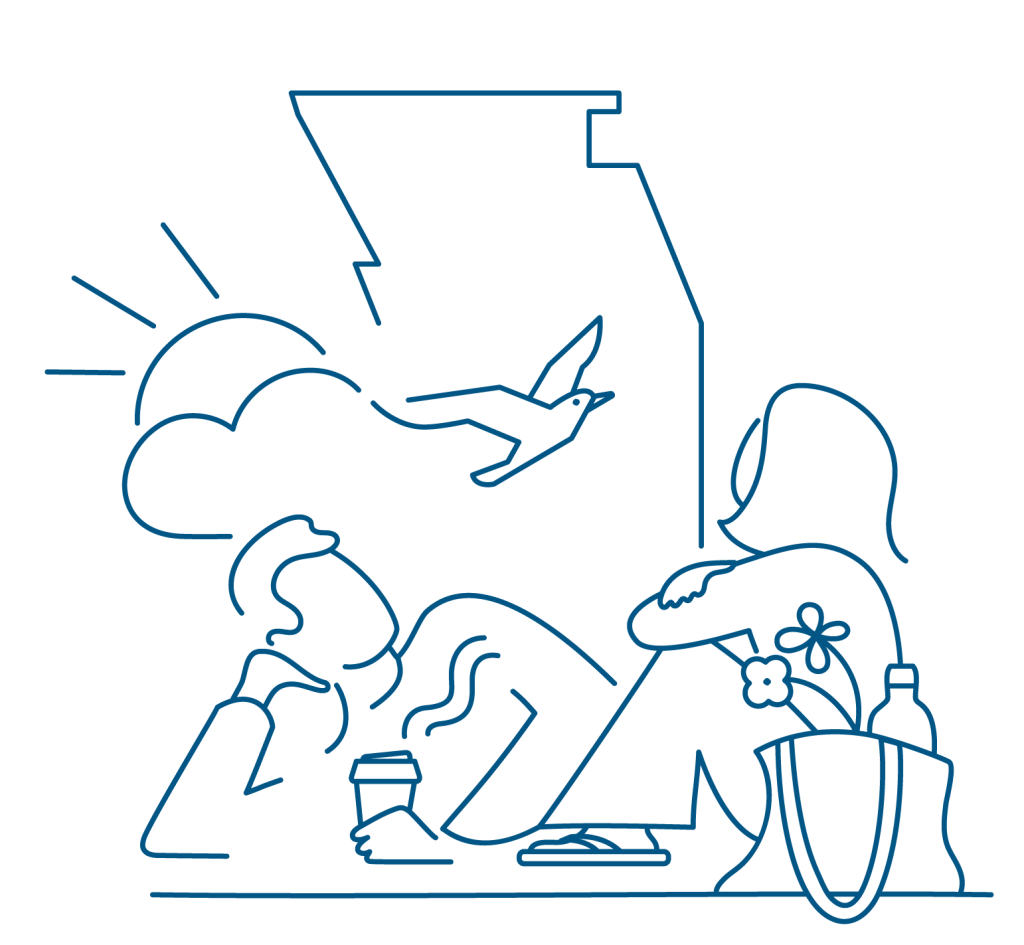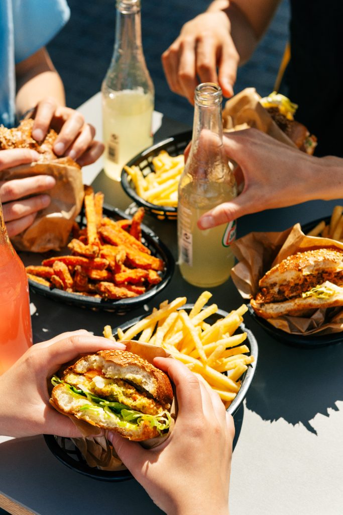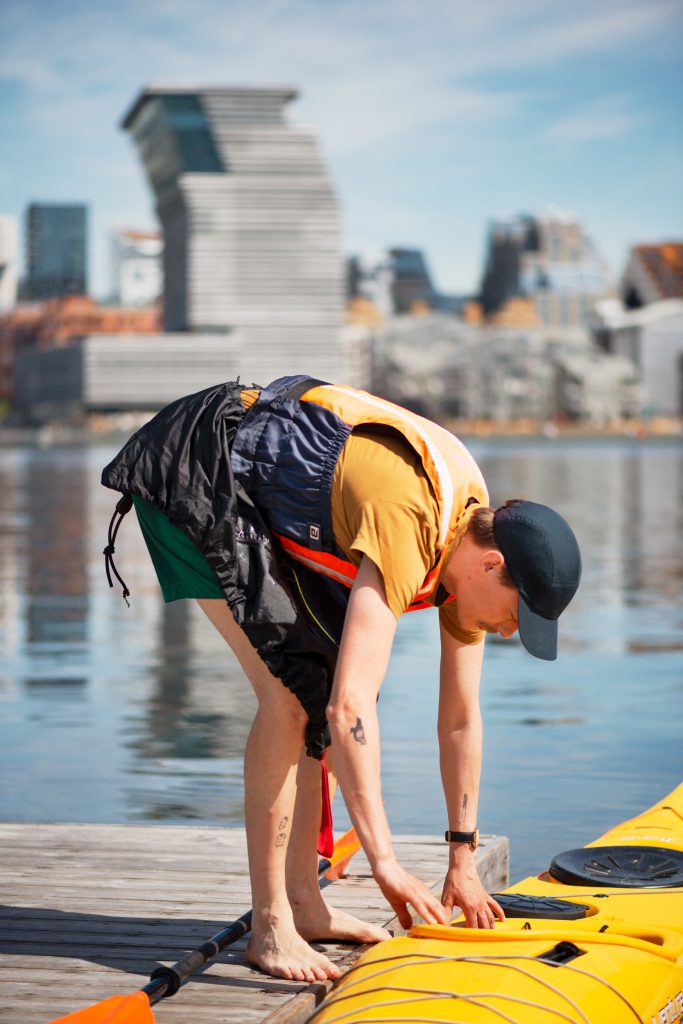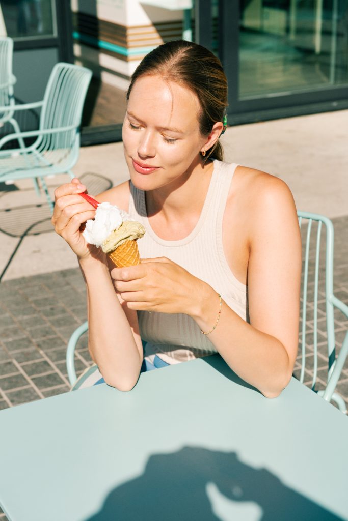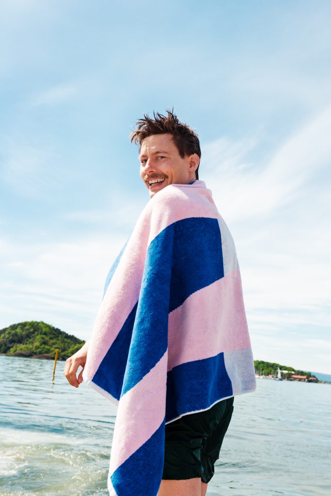The phrase “Der byen spirer.” is consistently rendered in the brand’s designated font, Tiempos Text Regular, and remains untranslatable.